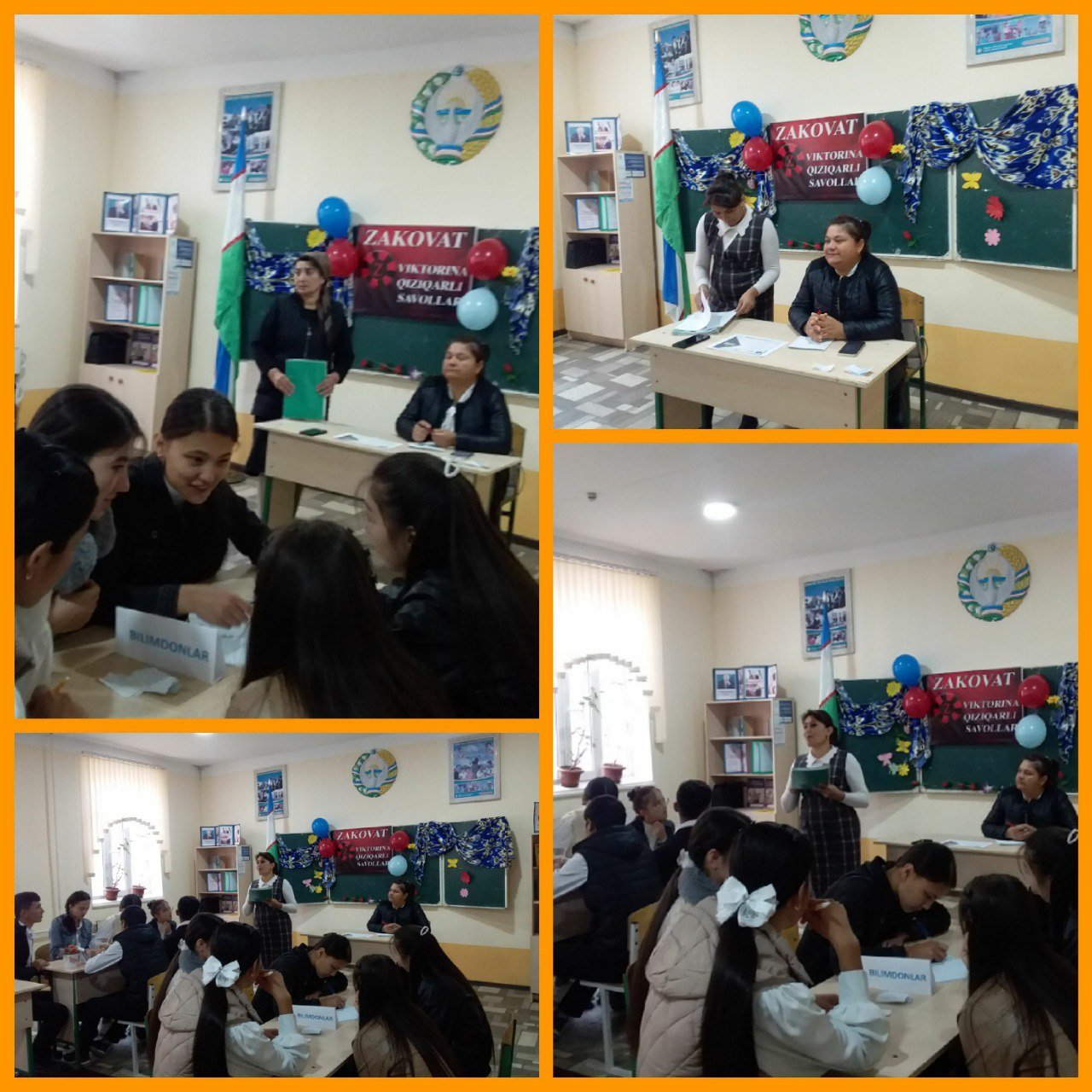 Xonqa tumani maktabgacha va maktab talimi bo‘limiga qarashli 29 - son maktabda "5 - tashabbus olimpiadasi doirasidagi" ZAKOVAT" intellektual o‘yinining kuzgi mavsum g‘olibi uchun maktabning 10 - 11 sinf o‘quvchilari o‘rtasida o‘tkazilgan "Zakovat" intellektual o‘yinida 4 ta jamoa o‘zaro kuch sinashdi. Bellashuvda Zakovat klubi koordinatori Xasanova L MMIBDO‘ Amatova S, maktabning Ona til va adabiyot fani o‘qituvchisi Botirova Y. tarix fani o‘qituvchisi Avazmetova M va maktab kutubxonachisi Saidovalar xakamlik qiladilar. Bellashuvda Bilimdonlar jamoasi 6.5 ball Temuriylar jamoasi 5.5 ball Zukkolar 4 ball va Intelekt jamoasi 3.5 ball to‘pladilar. Bilimdonlar jamoasi 6.5 ball bilan g‘olib deb belgilandi. G‘olib jamoaga maktab ma‘muriyati tomonidan Zakovat klubining diplomi topshirildi.